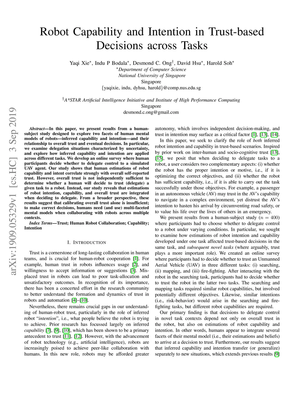 Robot Capability and Intention in Trust-based Decisions across Tasks