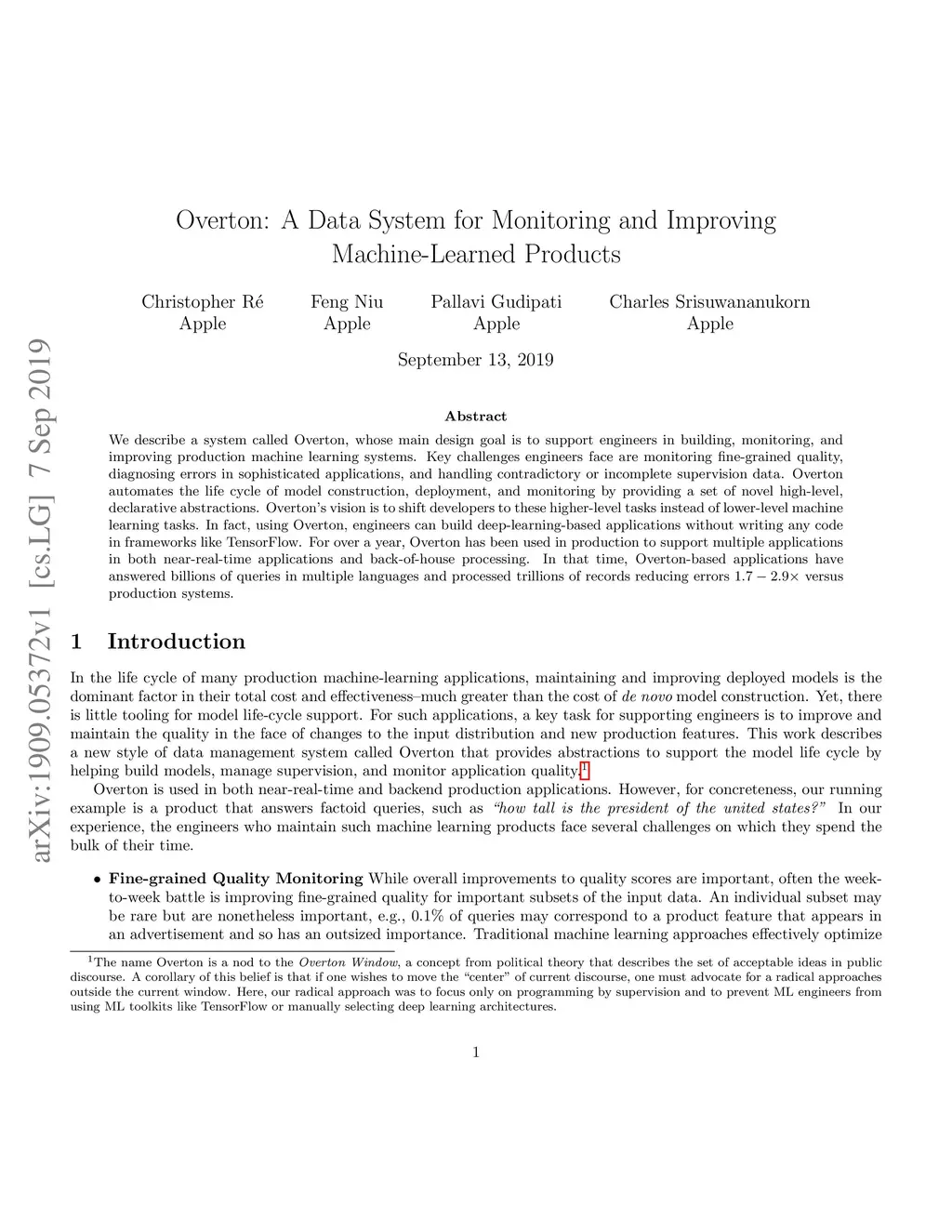 Overton: A Data System for Monitoring and Improving Machine-Learned