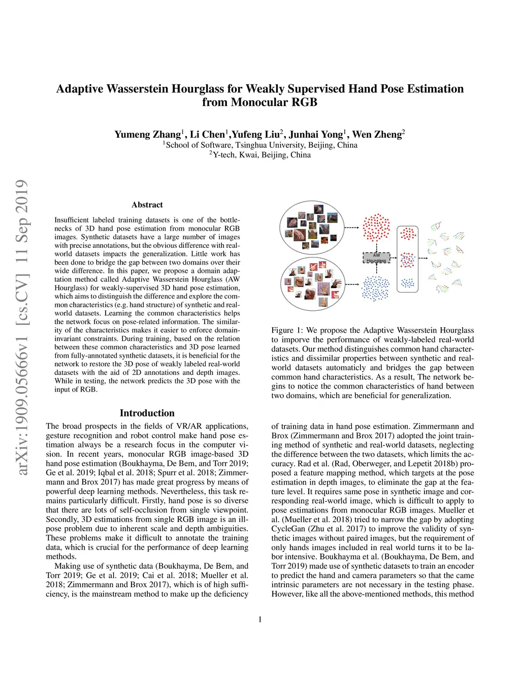 Adaptive Wasserstein Hourglass for Weakly Supervised Hand Pose