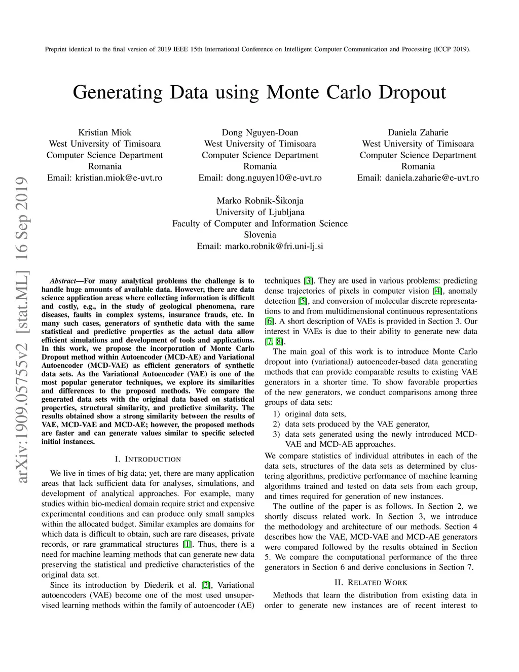 Generating Data using Monte Carlo Dropout