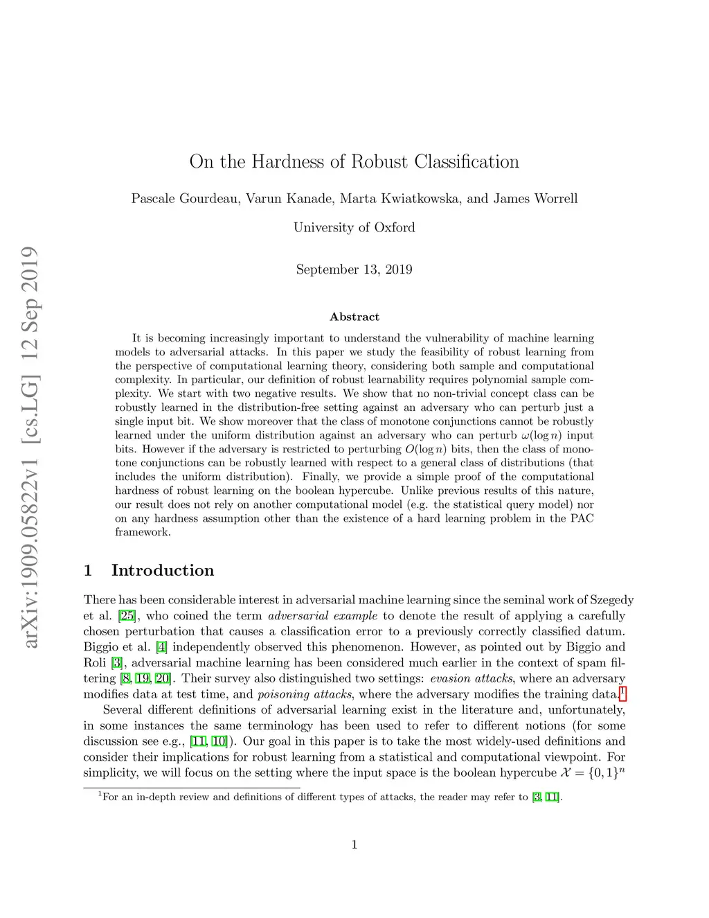 On the Hardness of Robust Classification
