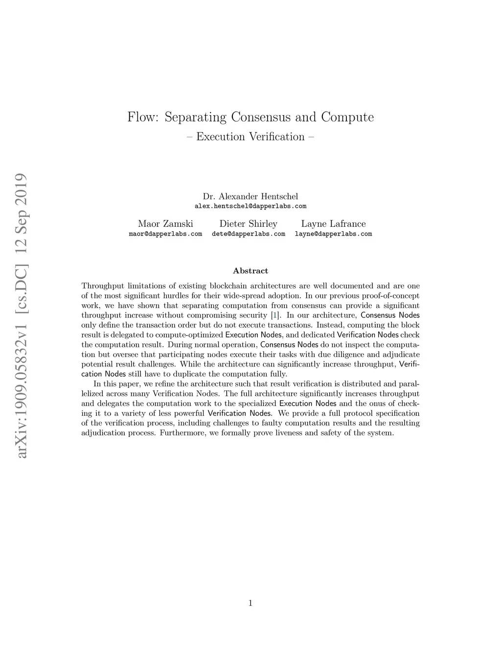 Flow: Separating Consensus and Compute -- Execution Verification