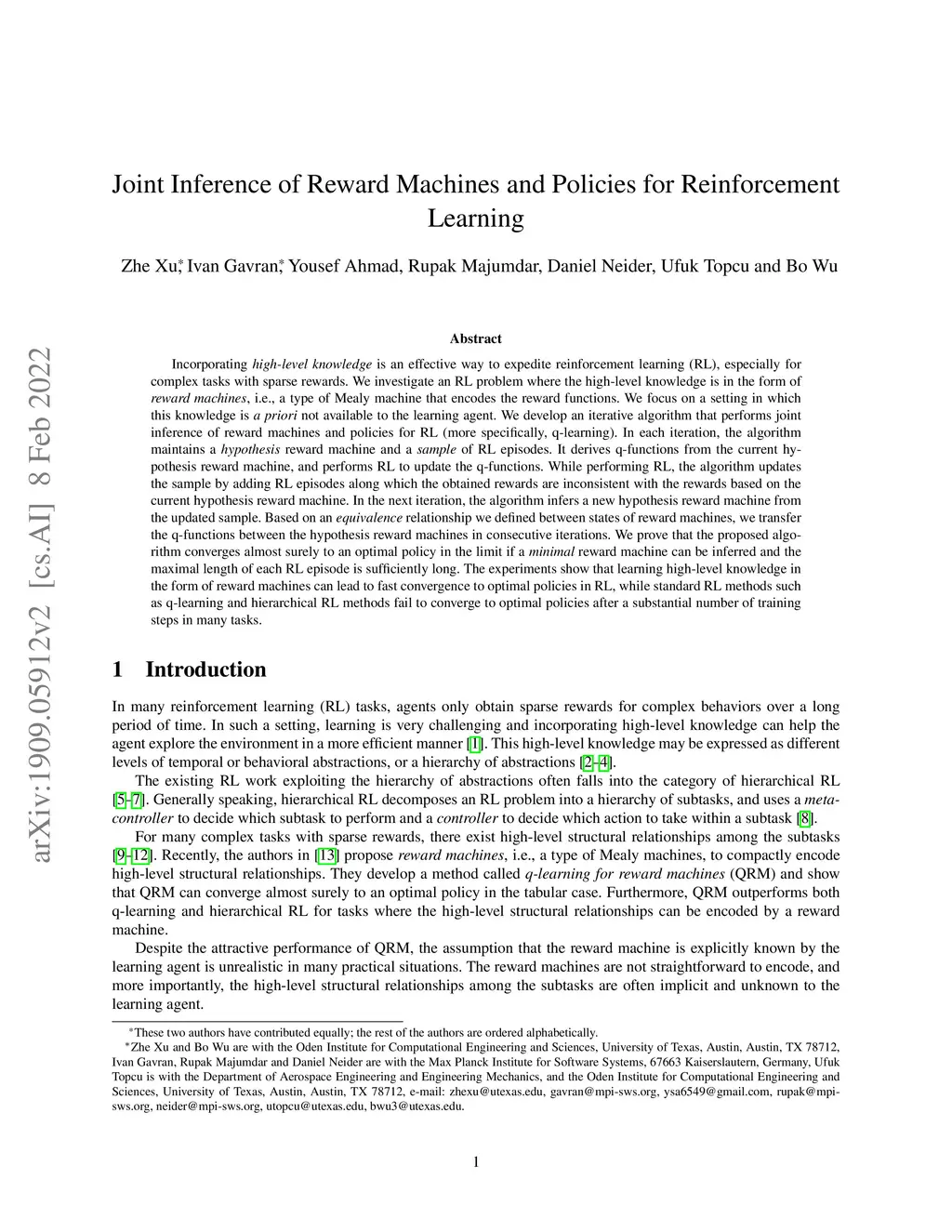 Joint Inference of Reward Machines and Policies for Reinforcement