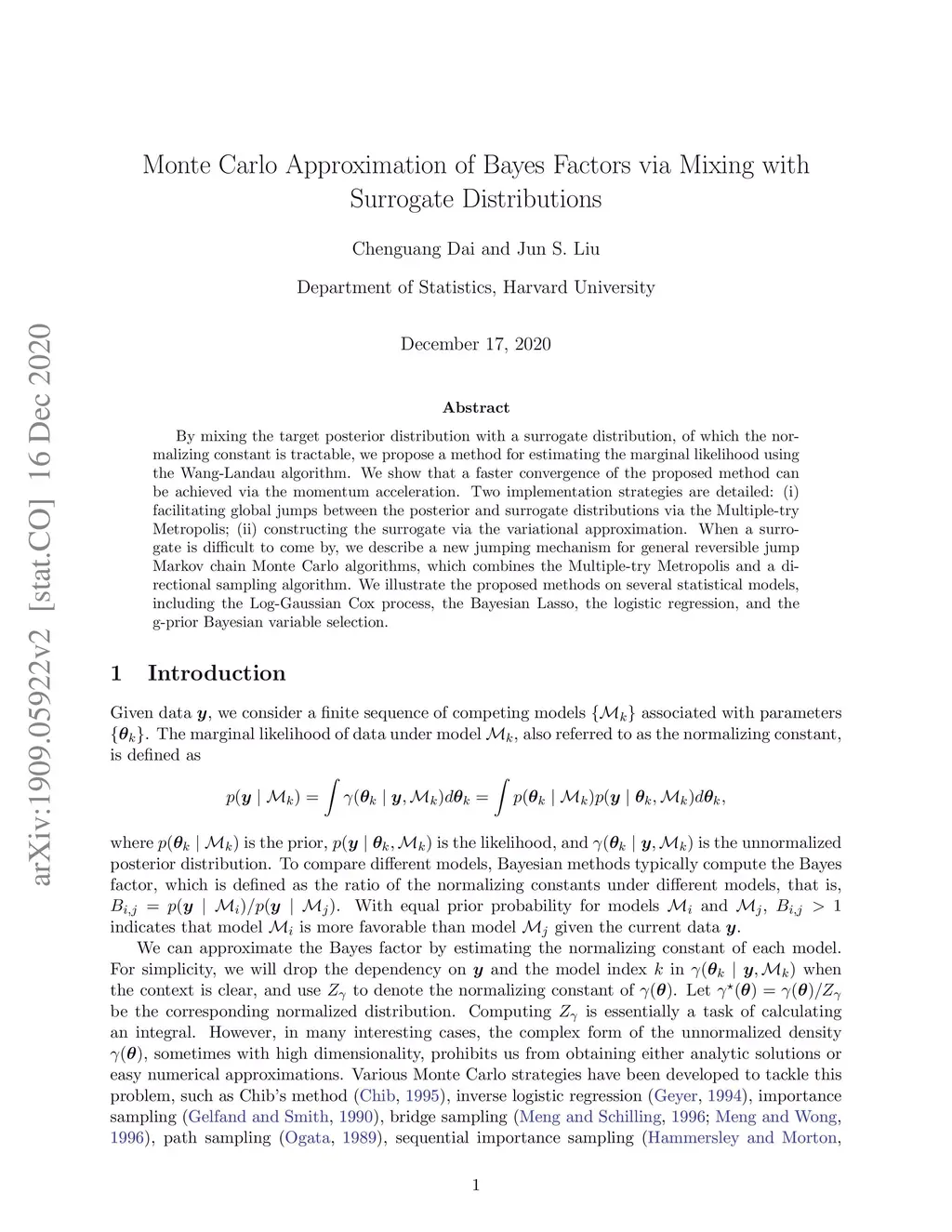 Monte Carlo Approximation of Bayes Factors via Mixing with Surrogate