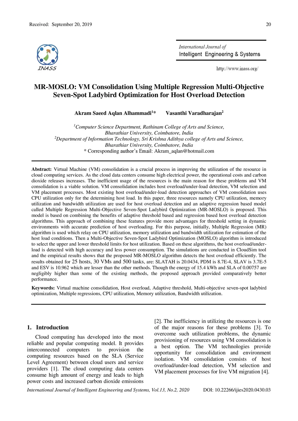 Mr-moslo: vm consolidation using multiple regression multi-objective