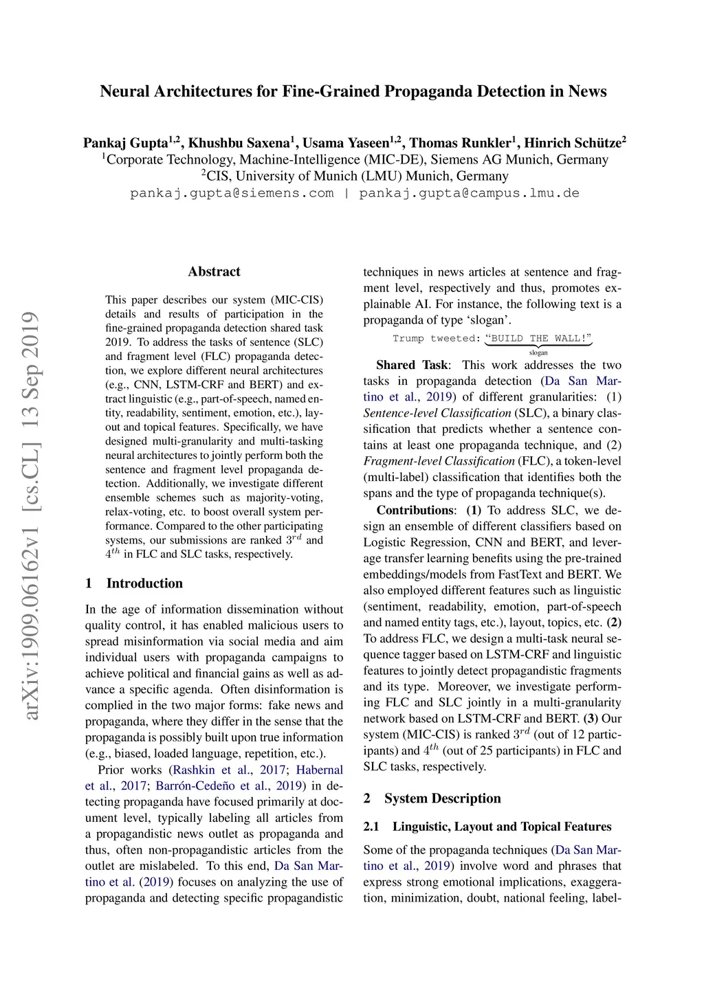 Neural Architectures for Fine-Grained Propaganda Detection in News