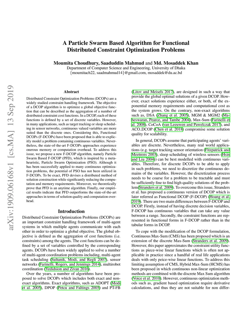 A Particle Swarm Based Algorithm for Functional Distributed Constraint