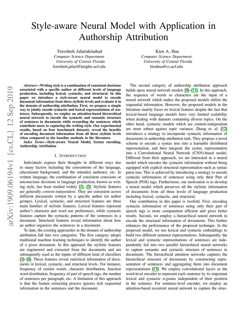 Style-aware Neural Model with Application in Authorship Attribution