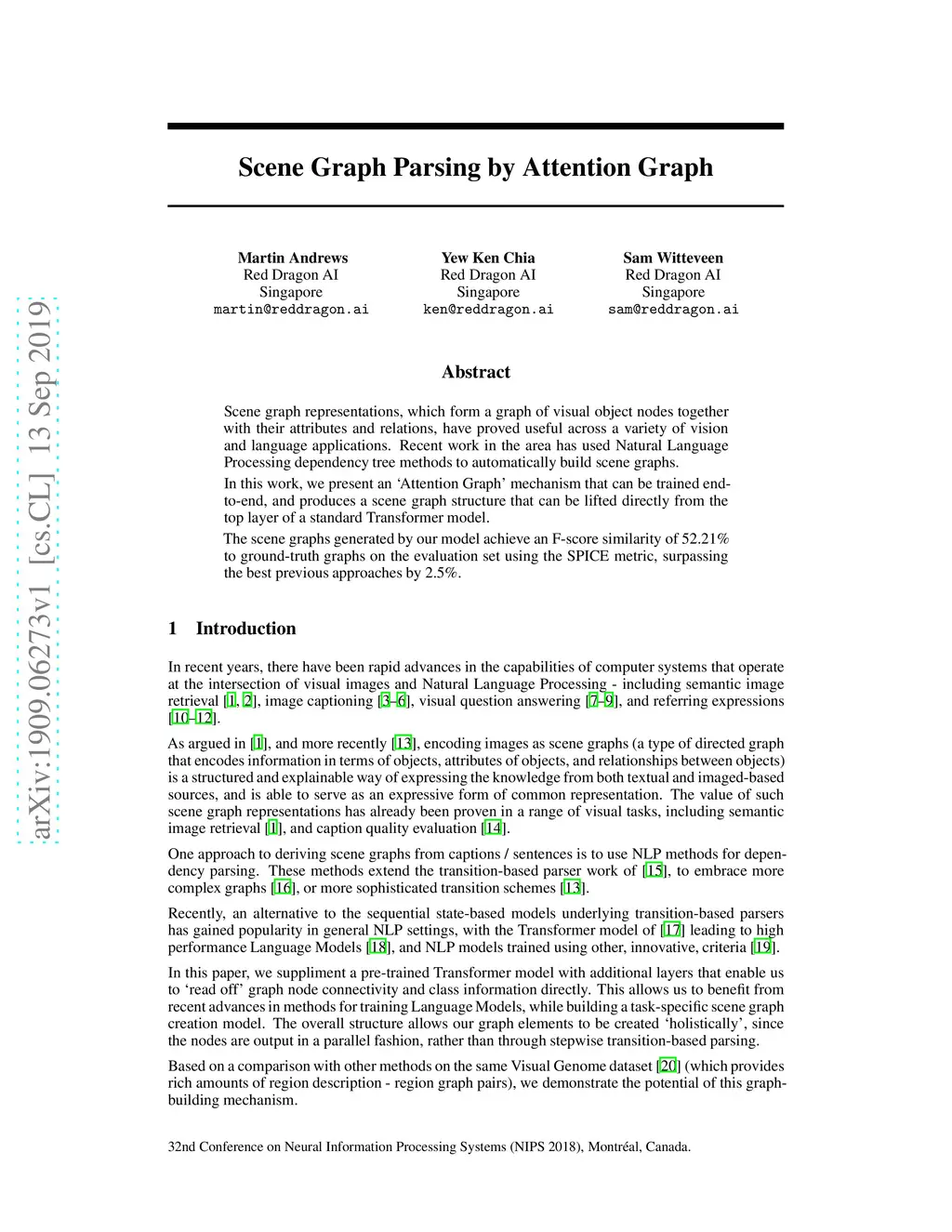 Scene graph representations, which form a graph of visual object nodes together with their attributes and relations, have proved useful across a variety of vision and language applications. Recent work in the area has used Natural Language Processing dependency tree methods to automatically build scene graphs. In this work, we present an Áttention Graph' mechanism that can be trained end-to-end, and produces a scene graph structure that can be lifted directly from the top layer of a standard Transformer model. The scene graphs generated by our model achieve an F-score similarity of 52.21% to ground-truth graphs on the evaluation set using the SPICE metric, surpassing the best previous approaches by 2.5%.
