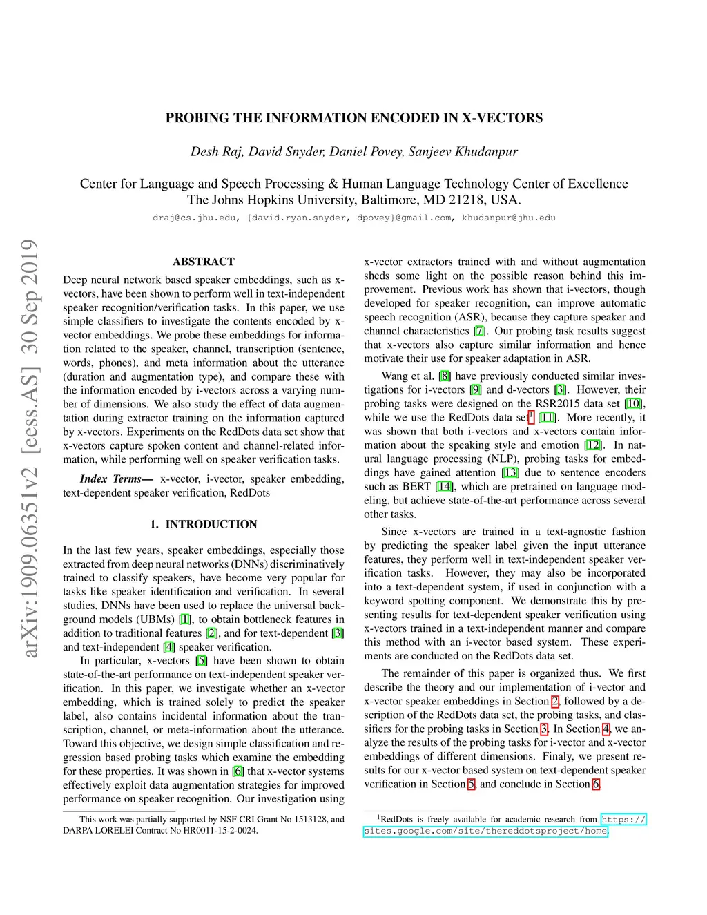 Deep neural network based speaker embeddings, such as x-vectors, have been shown to perform well in text-independent speaker recognition/verification tasks. In this paper, we use simple classifiers to investigate the contents encoded by x-vector embeddings. We probe these embeddings for information related to the speaker, channel, transcription (sentence, words, phones), and meta information about the utterance (duration and augmentation type), and compare these with the information encoded by i-vectors across a varying number of dimensions. We also study the effect of data augmentation during extractor training on the information captured by x-vectors. Experiments on the RedDots data set show that x-vectors capture spoken content and channel-related information, while performing well on speaker verification tasks.