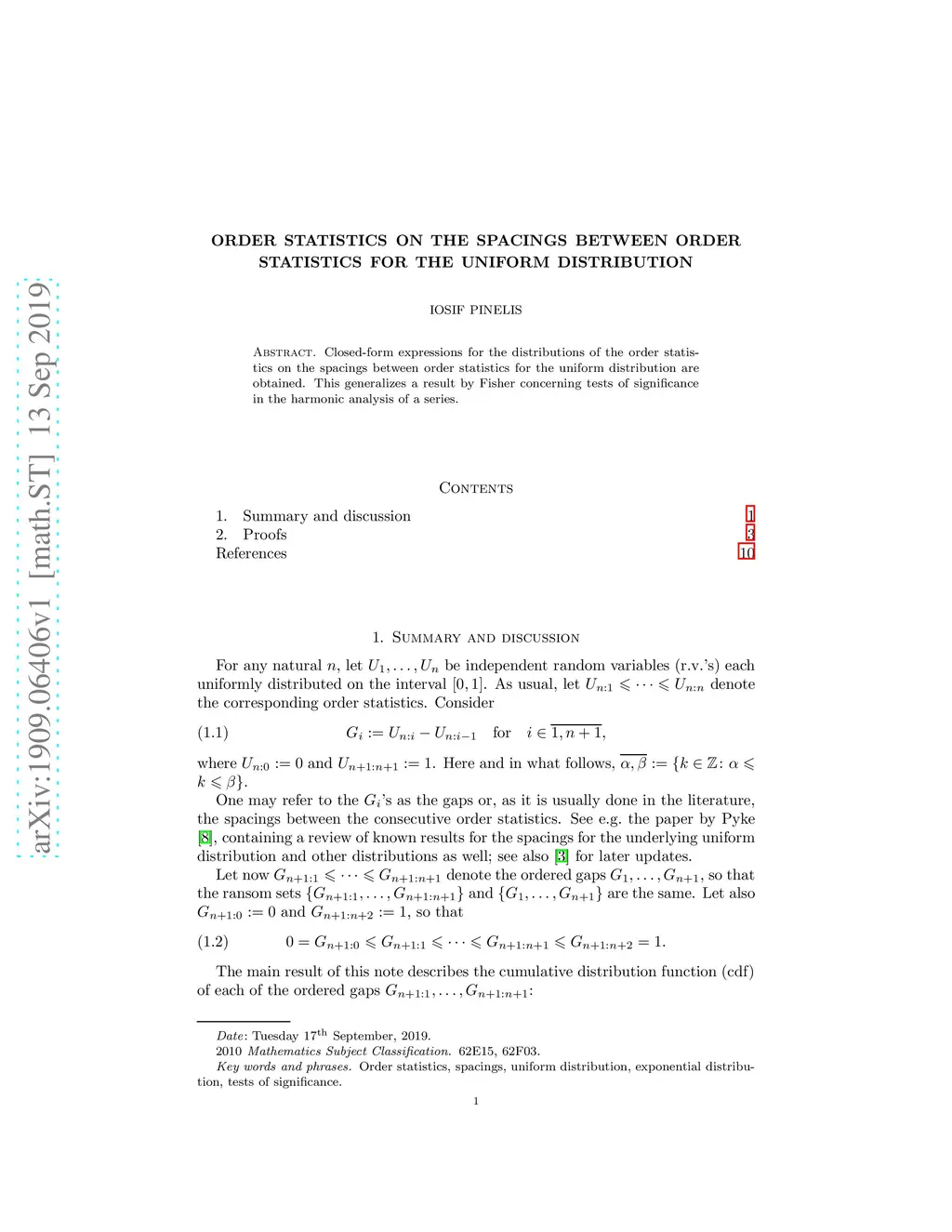 Closed-form expressions for the distributions of the order statistics on the spacings between order statistics for the uniform distribution are obtained. This generalizes a result by Fisher concerning tests of significance in the harmonic analysis of a series.