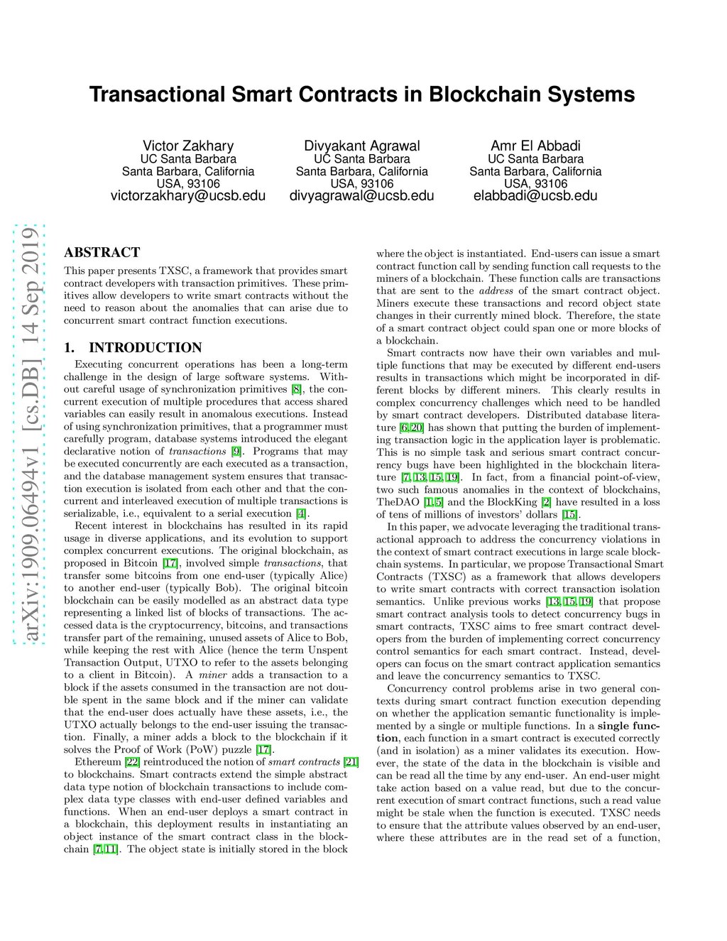 Transactional Smart Contracts in Blockchain Systems