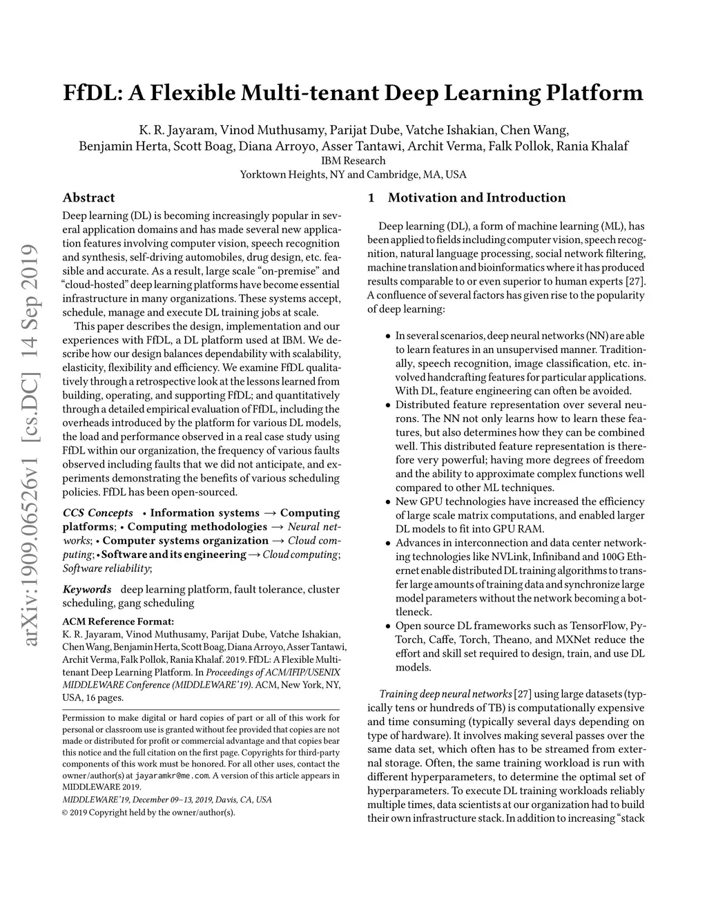 FfDL : A Flexible Multi-tenant Deep Learning Platform