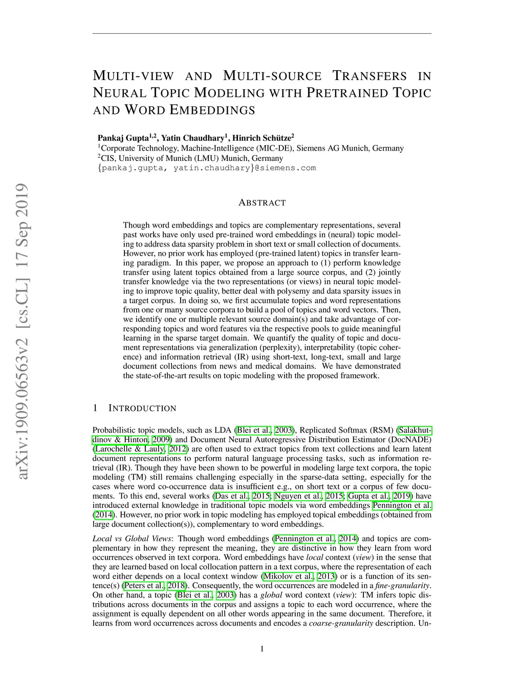 Multi-view and Multi-source Transfers in Neural Topic Modeling with