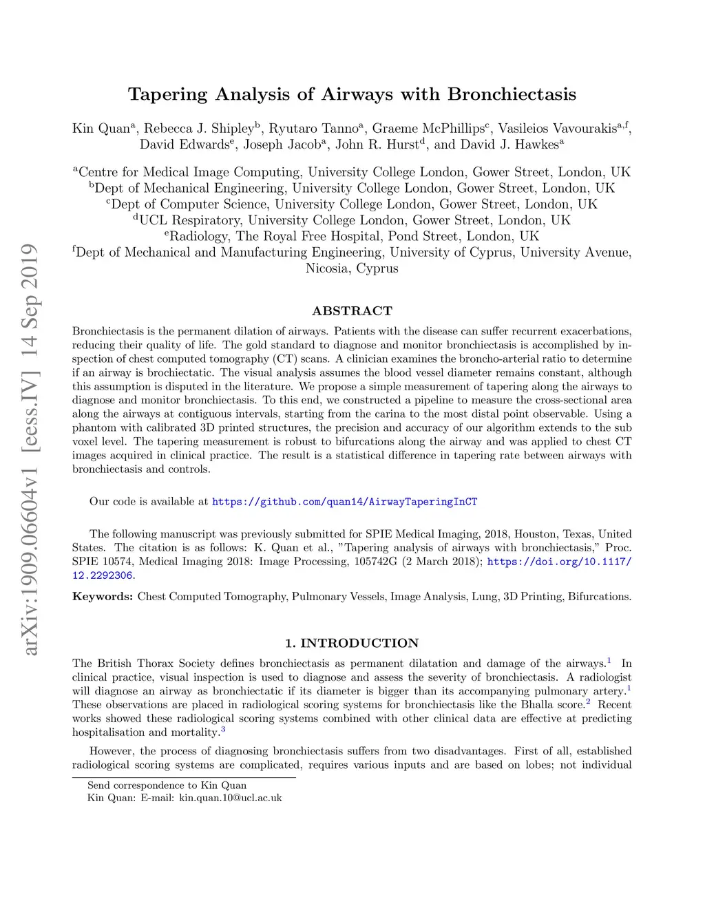 Tapering Analysis of Airways with Bronchiectasis