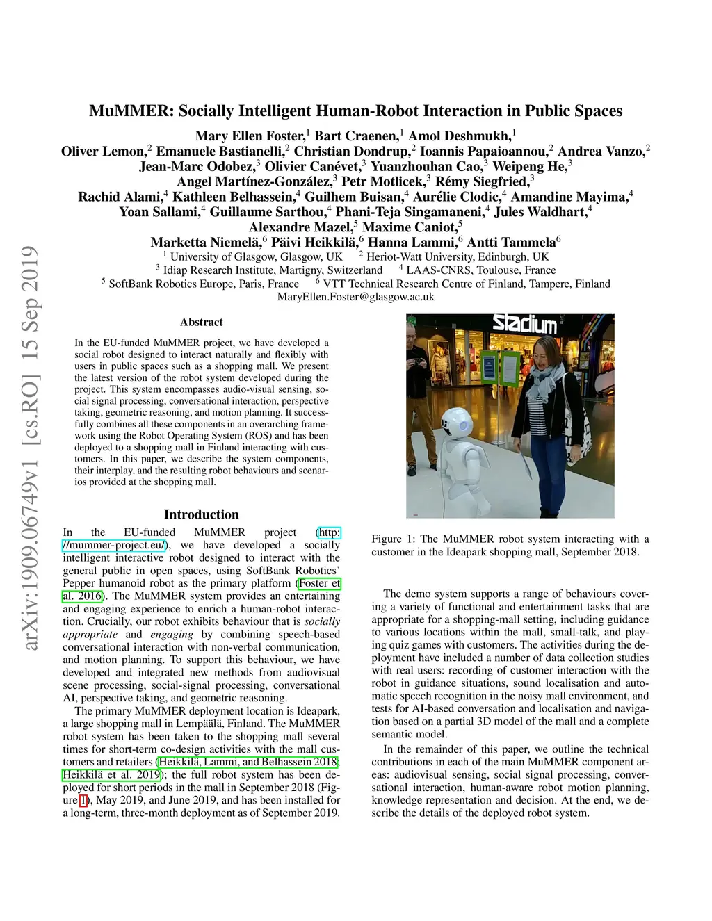 MuMMER: Socially Intelligent Human-Robot Interaction in Public Spaces