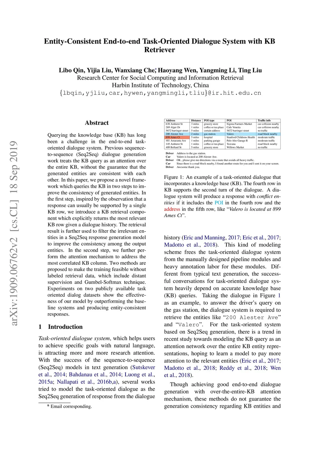 Entity-Consistent End-to-end Task-Oriented Dialogue System with KB