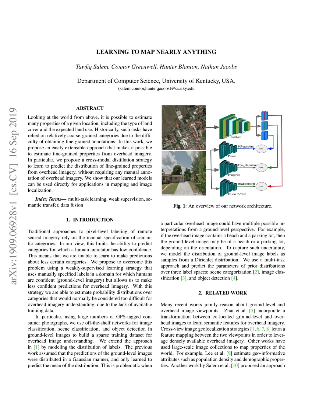 Looking at the world from above, it is possible to estimate many properties of a given location, including the type of land cover and the expected land use. Historically, such tasks have relied on relatively coarse-grained categories due to the difficulty of obtaining fine-grained annotations. In this work, we propose an easily extensible approach that makes it possible to estimate fine-grained properties from overhead imagery. In particular, we propose a cross-modal distillation strategy to learn to predict the distribution of fine-grained properties from overhead imagery, without requiring any manual annotation of overhead imagery. We show that our learned models can be used directly for applications in mapping and image localization.