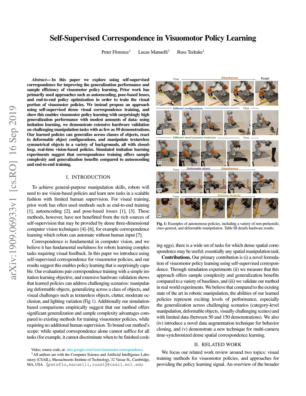 Self-Supervised Correspondence in Visuomotor Policy Learning