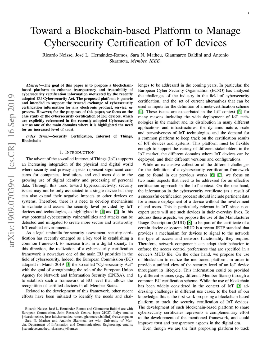 Toward a Blockchain-based Platform to Manage Cybersecurity Certification