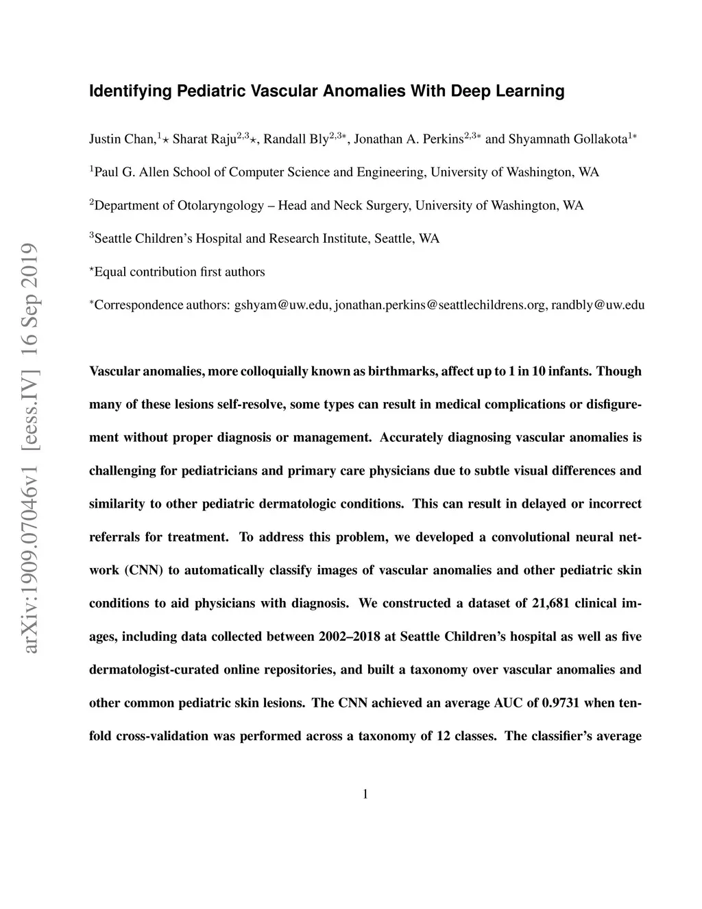 Identifying Pediatric Vascular Anomalies With Deep Learning