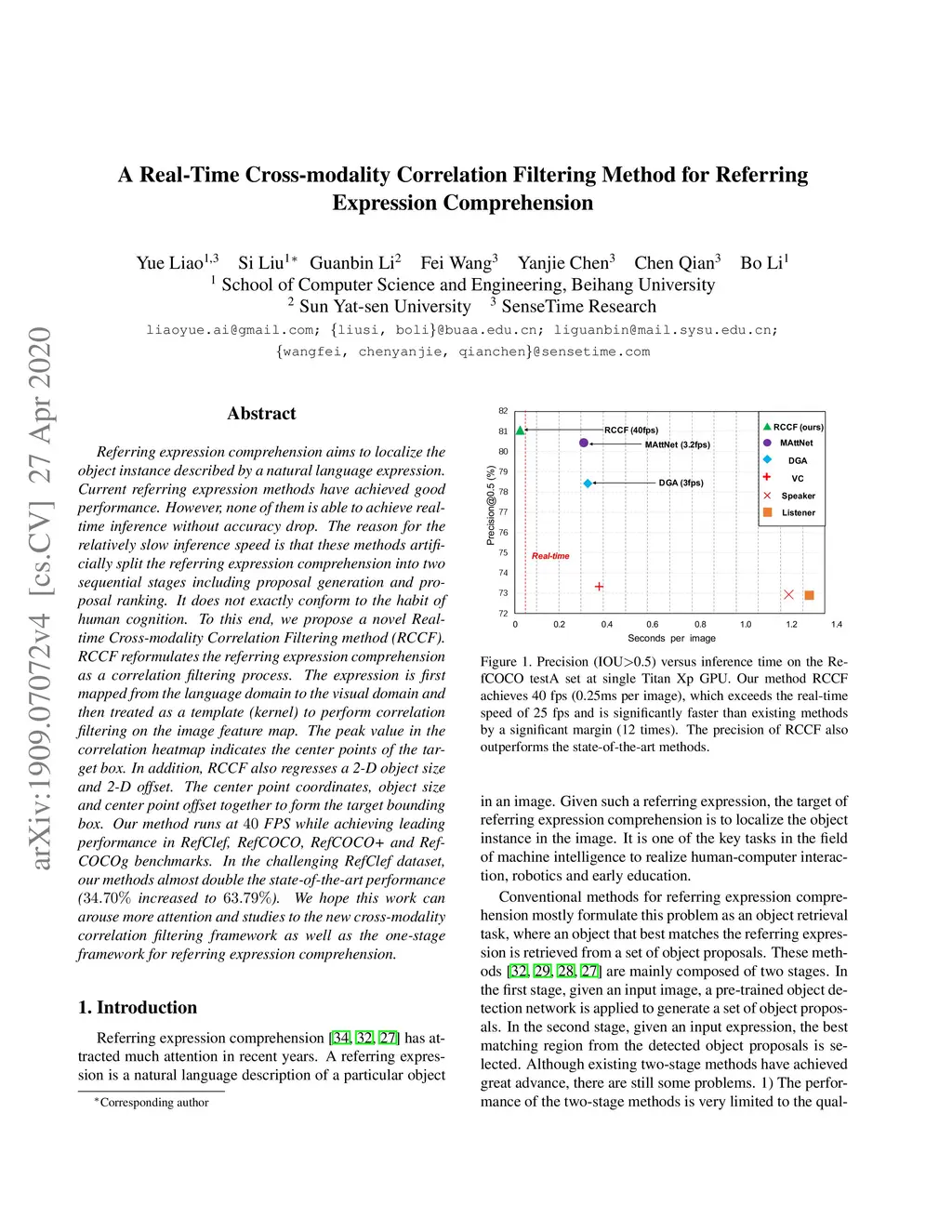 A Real-Time Cross-modality Correlation Filtering Method for Referring