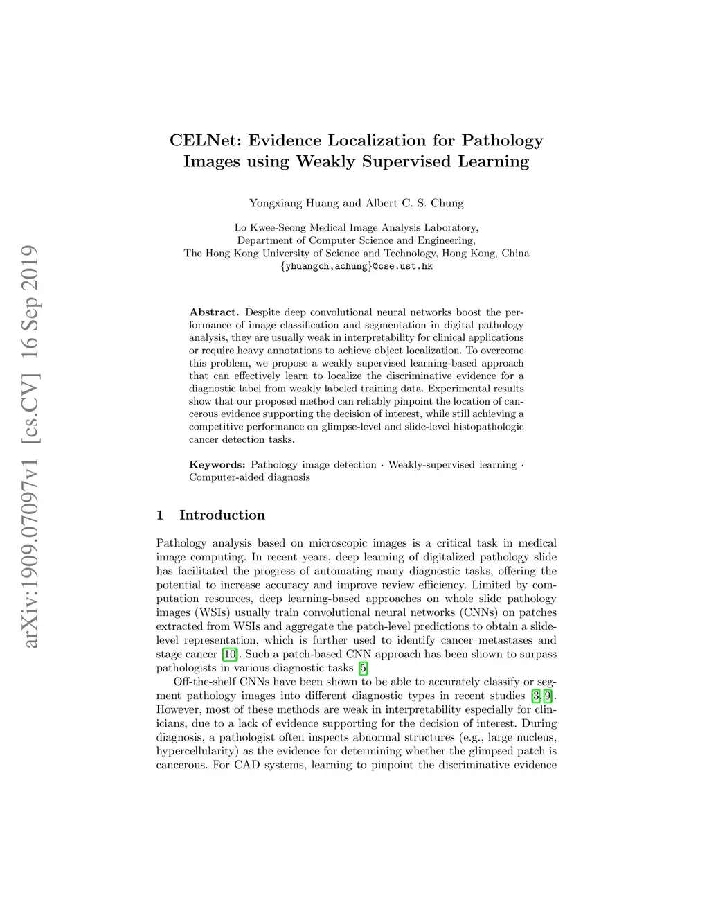 CELNet: Evidence Localization for Pathology Images using Weakly