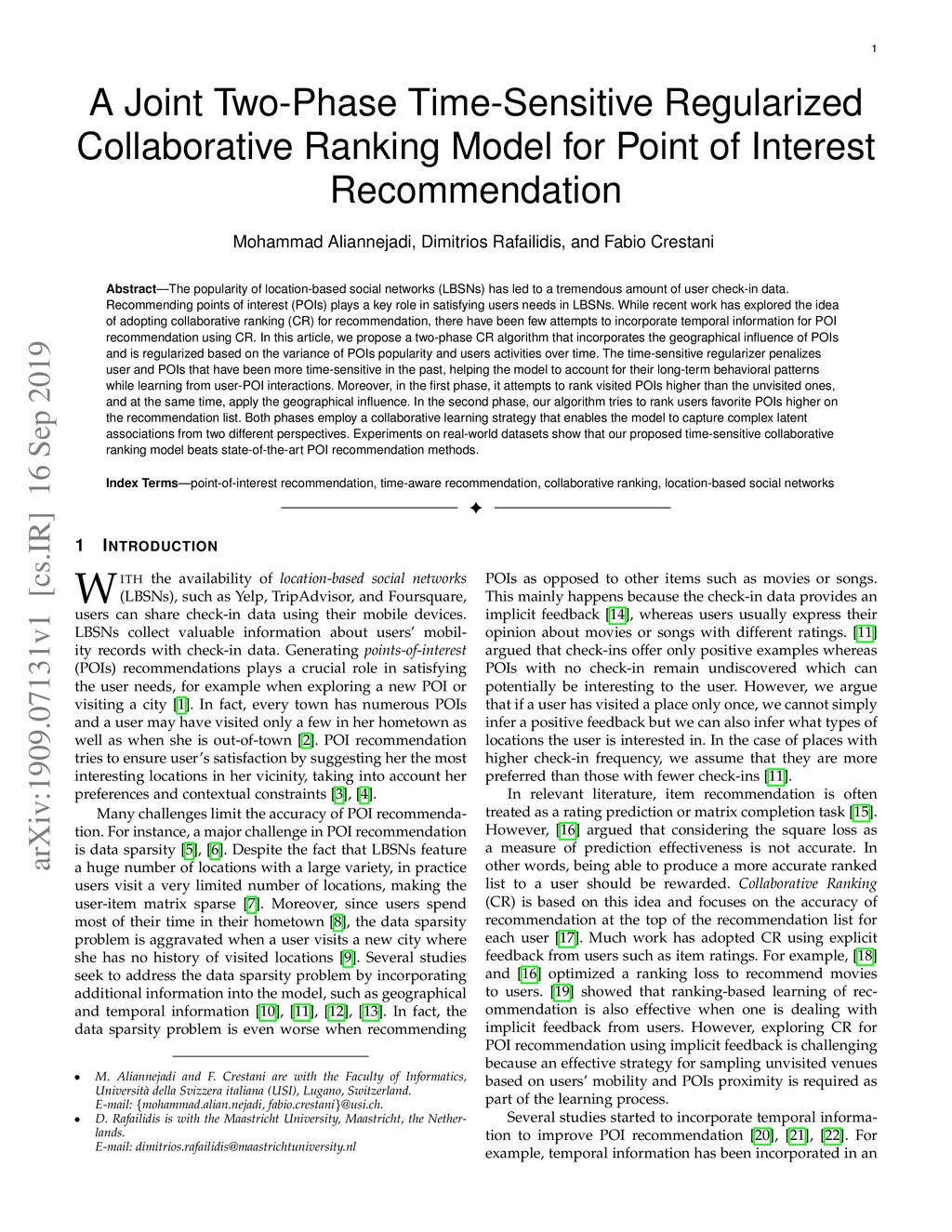 for Point of Interest Recommendation