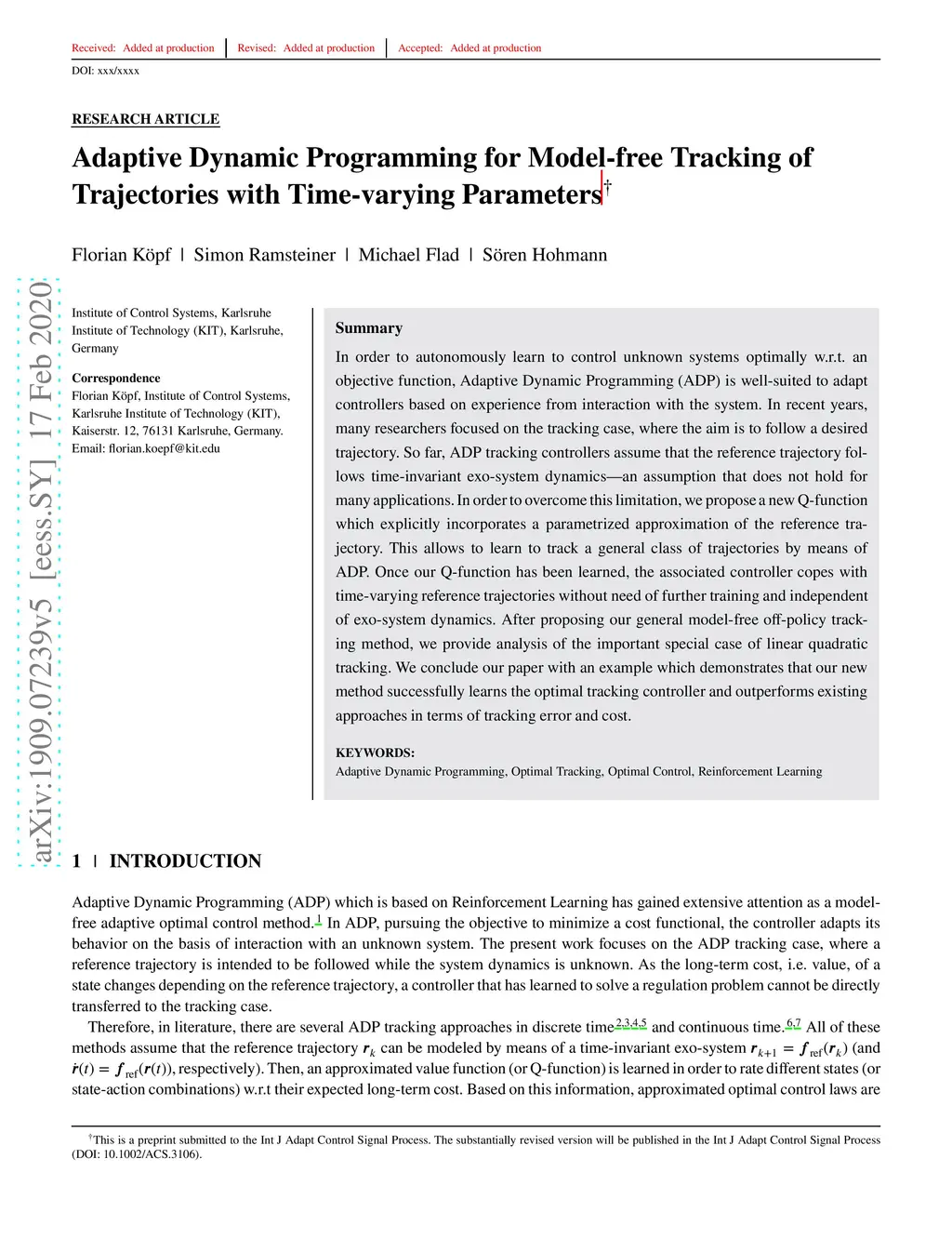 Adaptive Dynamic Programming for Model-free Tracking of Trajectories