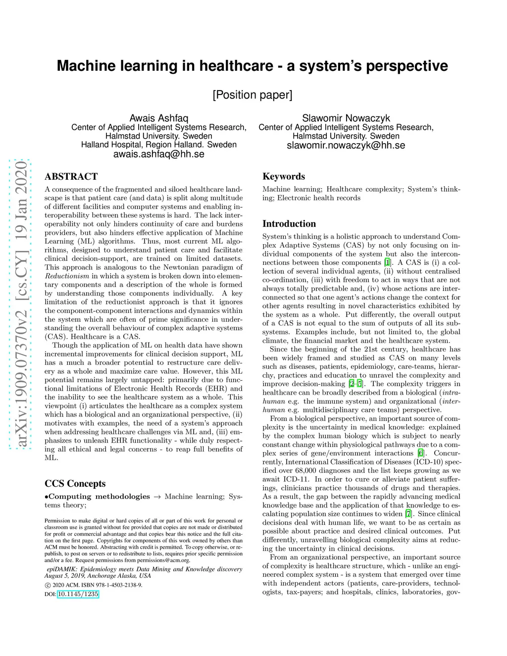 A consequence of the fragmented and siloed healthcare landscape is that patient care (and data) is split along multitude of different facilities and computer systems and enabling interoperability between these systems is hard. The lack interoperability not only hinders continuity of care and burdens providers, but also hinders effective application of Machine Learning (ML) algorithms. Thus, most current ML algorithms, designed to understand patient care and facilitate clinical decision-support, are trained on limited datasets. This approach is analogous to the Newtonian paradigm of Reductionism in which a system is broken down into elementary components and a description of the whole is formed by understanding those components individually. A key limitation of the reductionist approach is that it ignores the component-component interactions and dynamics within the system which are often of prime significance in understanding the overall behaviour of complex adaptive systems (CAS). Healthcare is a CAS. Though the application of ML on health data have shown incremental improvements for clinical decision support, ML has a much a broader potential to restructure care delivery as a whole and maximize care value. However, this ML potential remains largely untapped: primarily due to functional limitations of Electronic Health Records (EHR) and the inability to see the healthcare system as a whole. This viewpoint (i) articulates the healthcare as a complex system which has a biological and an organizational perspective, (ii) motivates with examples, the need of a system's approach when addressing healthcare challenges via ML and, (iii) emphasizes to unleash EHR functionality - while duly respecting all ethical and legal concerns - to reap full benefits of ML.