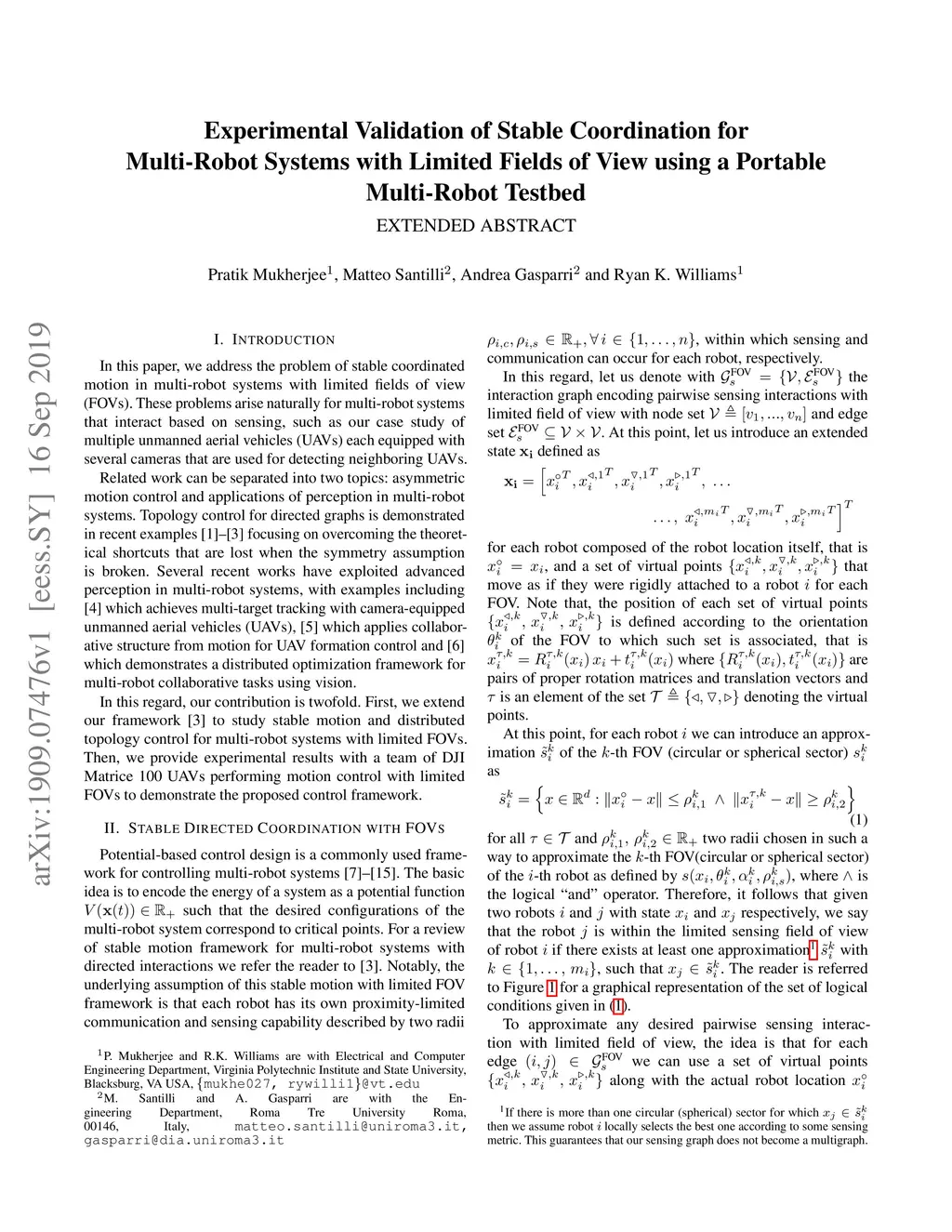 with Limited Fields of View using a PortableMulti-Robot Testbed