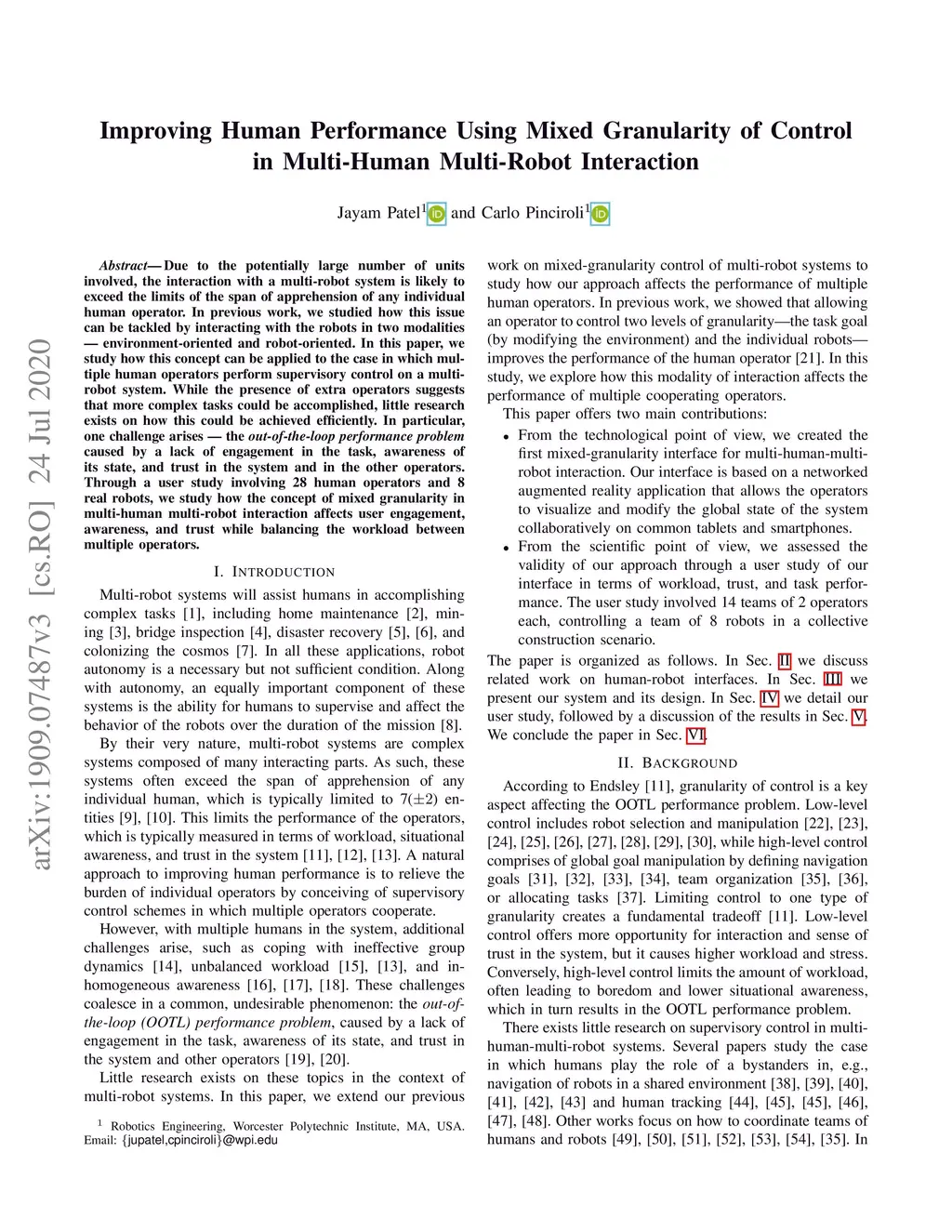 Improving Human Performance Using Mixed Granularity of Control in
