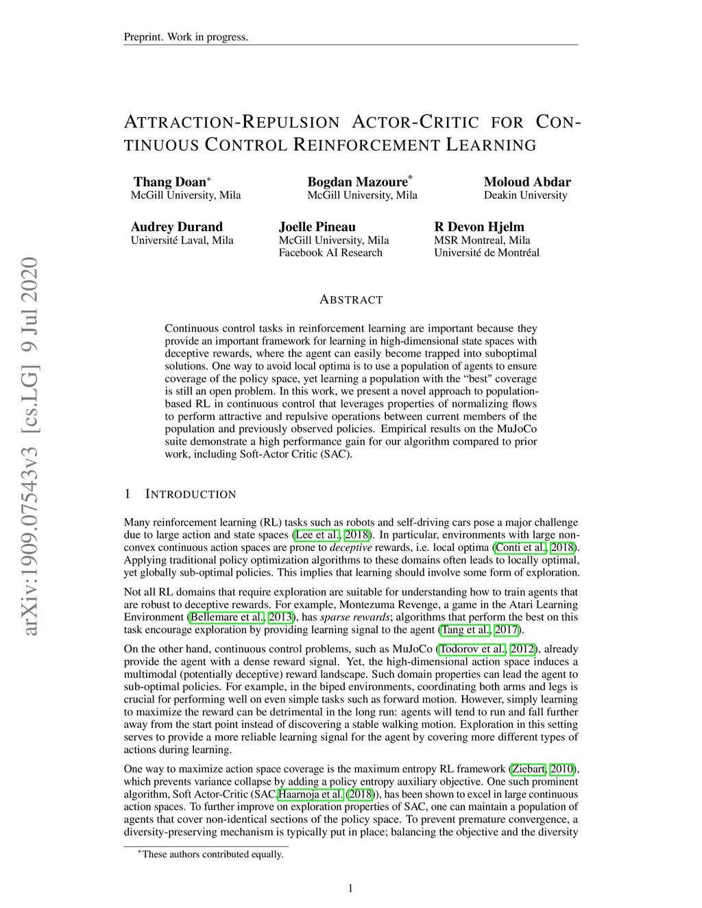 Attraction-Repulsion Actor-Critic for Continuous Control Reinforcement