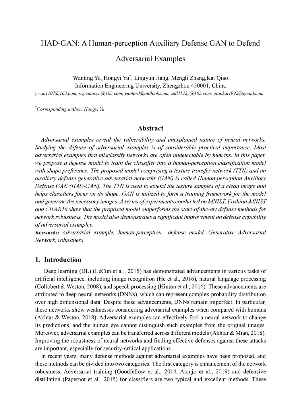 HAD-GAN: A Human-perception Auxiliary Defense GAN to Defend Adversarial