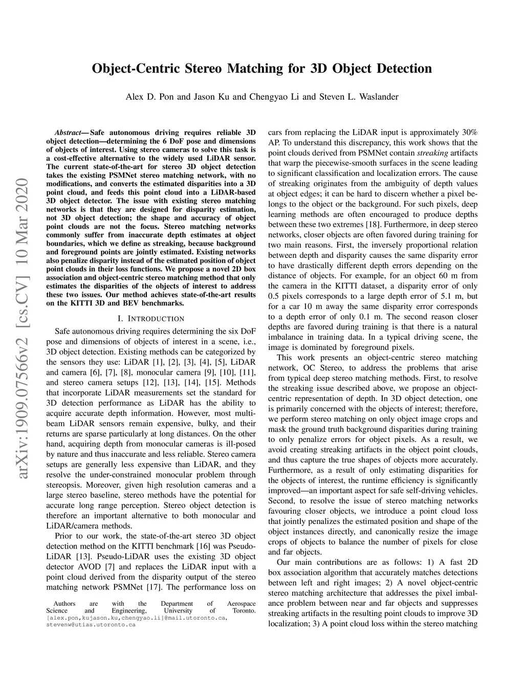Safe autonomous driving requires reliable 3D object detection-determining the 6 DoF pose and dimensions of objects of interest. Using stereo cameras to solve this task is a cost-effective alternative to the widely used LiDAR sensor. The current state-of-the-art for stereo 3D object detection takes the existing PSMNet stereo matching network, with no modifications, and converts the estimated disparities into a 3D point cloud, and feeds this point cloud into a LiDAR-based 3D object detector. The issue with existing stereo matching networks is that they are designed for disparity estimation, not 3D object detection; the shape and accuracy of object point clouds are not the focus. Stereo matching networks commonly suffer from inaccurate depth estimates at object boundaries, which we define as streaking, because background and foreground points are jointly estimated. Existing networks also penalize disparity instead of the estimated position of object point clouds in their loss functions. We propose a novel 2D box association and object-centric stereo matching method that only estimates the disparities of the objects of interest to address these two issues. Our method achieves state-of-the-art results on the KITTI 3D and BEV benchmarks.