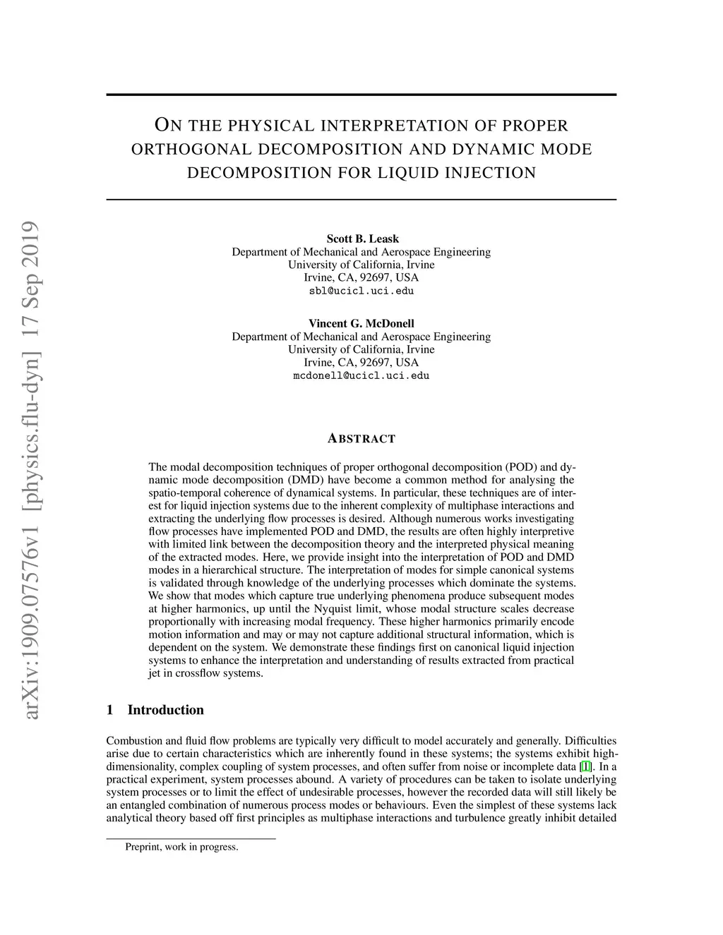 The modal decomposition techniques of proper orthogonal decomposition (POD) and dynamic mode decomposition (DMD) have become a common method for analysing the spatio-temporal coherence of dynamical systems. In particular, these techniques are of interest for liquid injection systems due to the inherent complexity of multiphase interactions and extracting the underlying flow processes is desired. Although numerous works investigating flow processes have implemented POD and DMD, the results are often highly interpretive with limited link between the decomposition theory and the interpreted physical meaning of the extracted modes. Here, we provide insight into the interpretation of POD and DMD modes in a hierarchical structure. The interpretation of modes for simple canonical systems is validated through knowledge of the underlying processes which dominate the systems. We show that modes which capture true underlying phenomena produce subsequent modes at higher harmonics, up until the Nyquist limit, whose modal structure scales decrease proportionally with increasing modal frequency. These higher harmonics primarily encode motion information and may or may not capture additional structural information, which is dependent on the system. We demonstrate these findings first on canonical liquid injection systems to enhance the interpretation and understanding of results extracted from practical jet in crossflow systems.