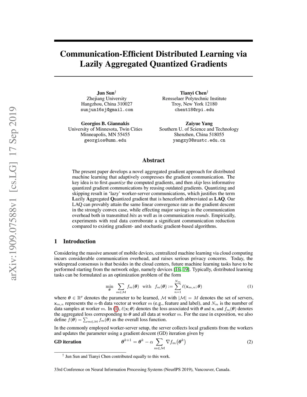 Communication-Efficient Distributed Learning via Lazily Aggregated
