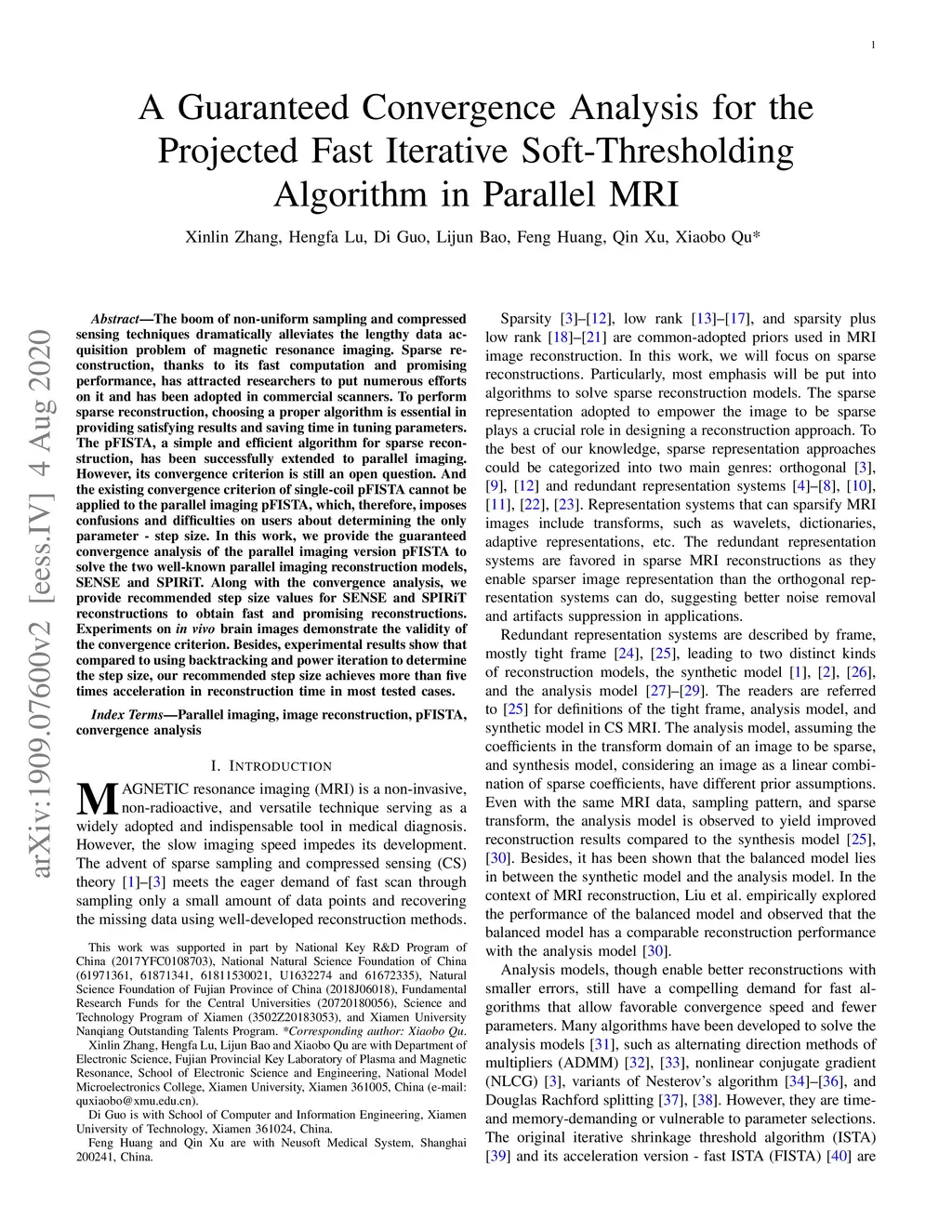 The boom of non-uniform sampling and compressed sensing techniques dramatically alleviates the lengthy data acquisition problem of magnetic resonance imaging. Sparse reconstruction, thanks to its fast computation and promising performance, has attracted researchers to put numerous efforts on it and has been adopted in commercial scanners. To perform sparse reconstruction, choosing a proper algorithm is essential in providing satisfying results and saving time in tuning parameters. The pFISTA, a simple and efficient algorithm for sparse reconstruction, has been successfully extended to parallel imaging. However, its convergence criterion is still an open question. And the existing convergence criterion of single-coil pFISTA cannot be applied to the parallel imaging pFISTA, which, therefore, imposes confusions and difficulties on users about determining the only parameter - step size. In this work, we provide the guaranteed convergence analysis of the parallel imaging version pFISTA to solve the two well-known parallel imaging reconstruction models, SENSE and SPIRiT. Along with the convergence analysis, we provide recommended step size values for SENSE and SPIRiT reconstructions to obtain fast and promising reconstructions. Experiments on in vivo brain images demonstrate the validity of the convergence criterion. Besides, experimental results show that compared to using backtracking and power iteration to determine the step size, our recommended step size achieves more than five times acceleration in reconstruction time in most tested cases.