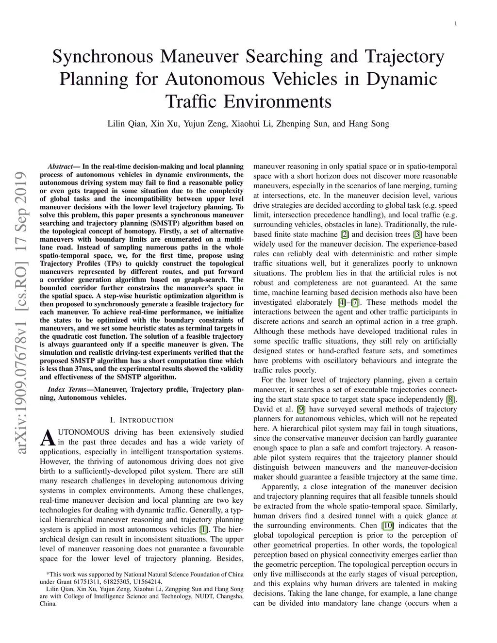 Synchronous Maneuver Searching and Trajectory Planning for Autonomous