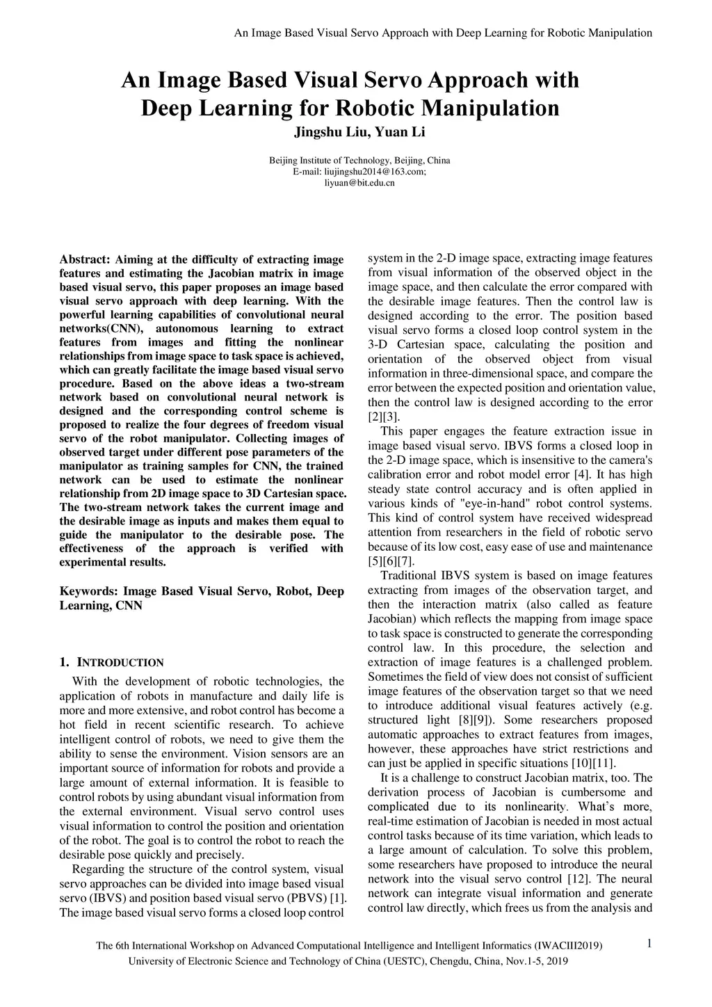 An Image Based Visual Servo Approach with Deep Learning for Robotic