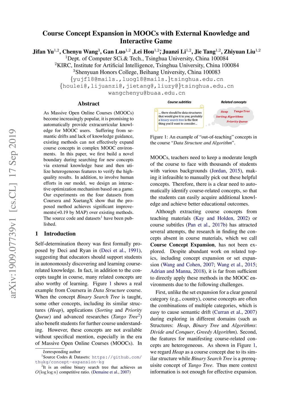 As Massive Open Online Courses (MOOCs) become increasingly popular, it is promising to automatically provide extracurricular knowledge for MOOC users. Suffering from semantic drifts and lack of knowledge guidance, existing methods can not effectively expand course concepts in complex MOOC environments. In this paper, we first build a novel boundary during searching for new concepts via external knowledge base and then utilize heterogeneous features to verify the high-quality results. In addition, to involve human efforts in our model, we design an interactive optimization mechanism based on a game. Our experiments on the four datasets from Coursera and XuetangX show that the proposed method achieves significant improvements(+0.19 by MAP) over existing methods. The source code and datasets have been published.