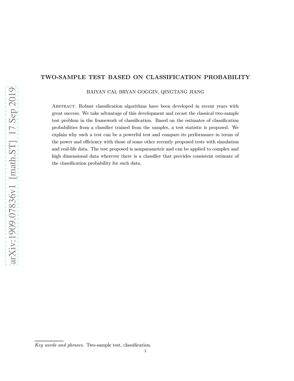Two-Sample Test Based on Classification Probability