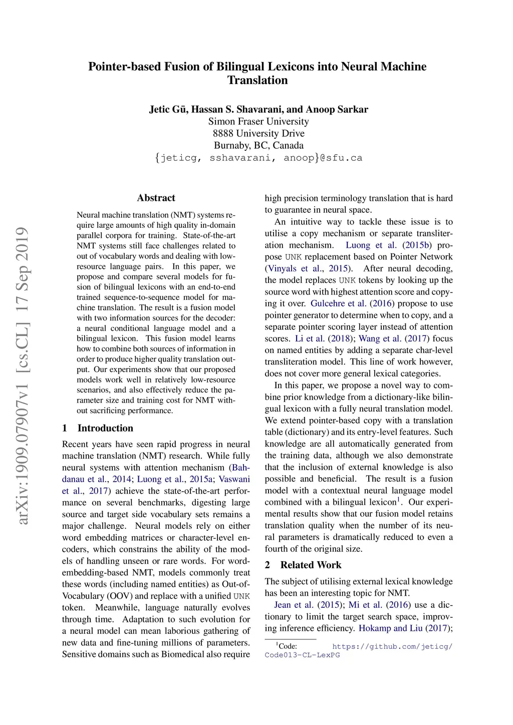 Pointer-based Fusion of Bilingual Lexicons into Neural Machine