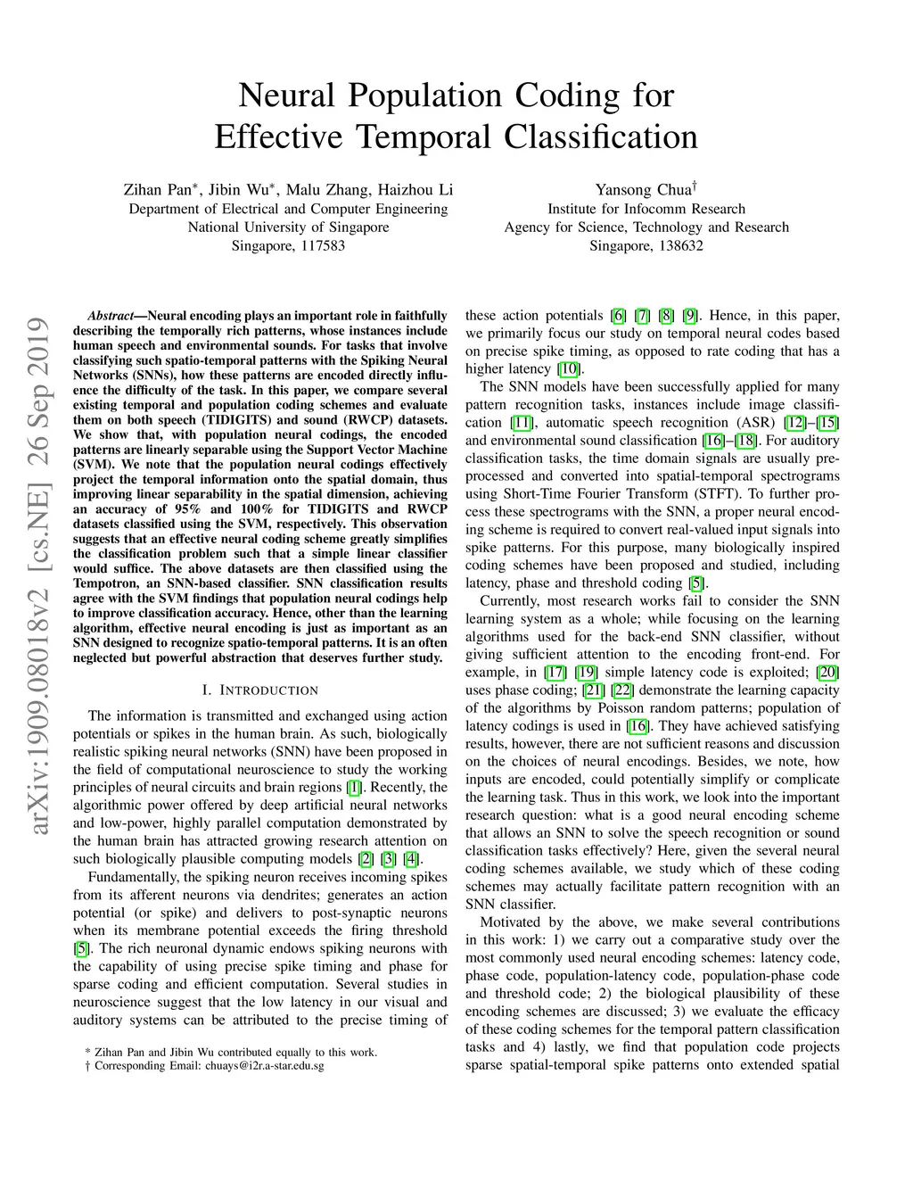 Neural Population Coding for Effective Temporal Classification