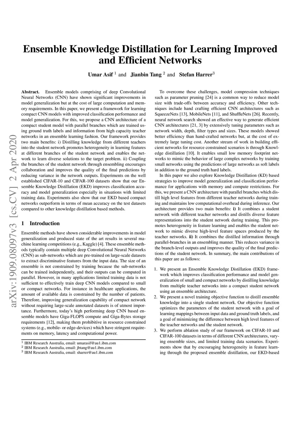 Ensemble Knowledge Distillation for Learning Improved and Efficient