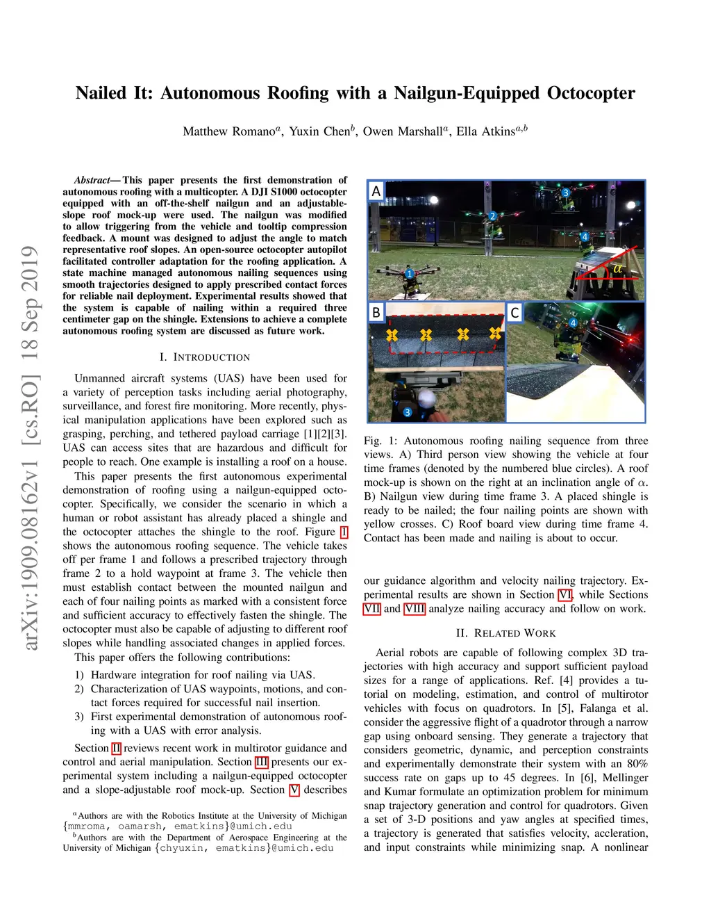 Nailed It: Autonomous Roofing with a Nailgun-Equipped Octocopter