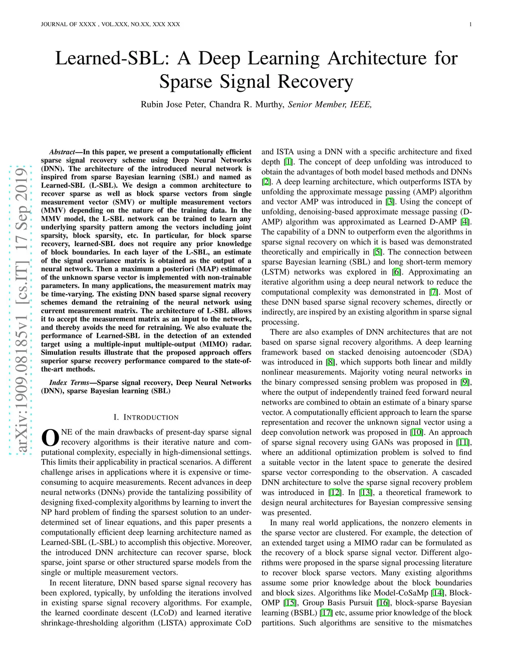 Learned-SBL: A Deep Learning Architecture for Sparse Signal Recovery