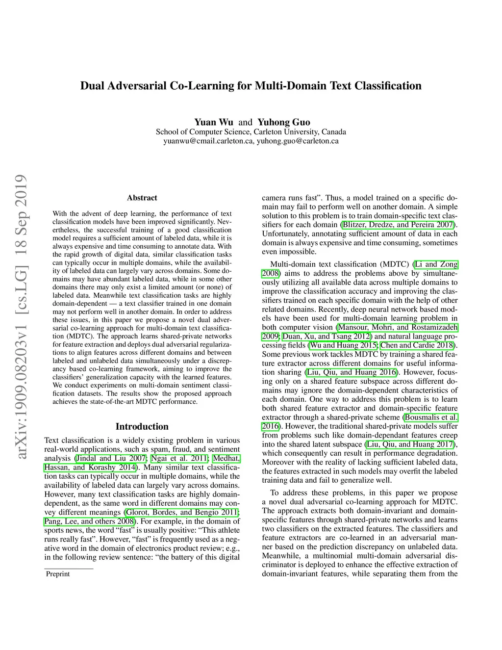 Dual Adversarial Co-Learning for Multi-Domain Text Classification