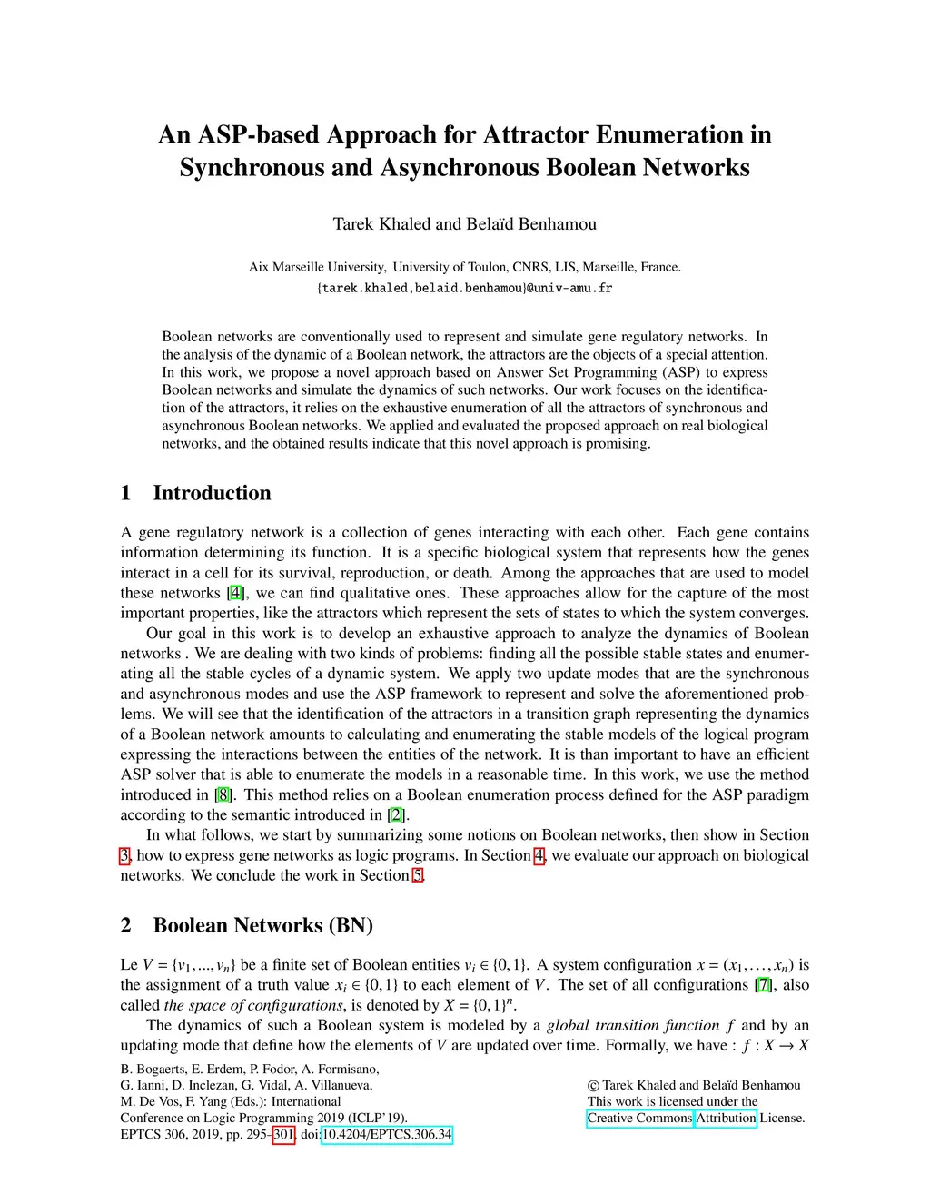 Boolean networks are conventionally used to represent and simulate gene regulatory networks. In the analysis of the dynamic of a Boolean network, the attractors are the objects of a special attention. In this work, we propose a novel approach based on Answer Set Programming (ASP) to express Boolean networks and simulate the dynamics of such networks. Our work focuses on the identification of the attractors, it relies on the exhaustive enumeration of all the attractors of synchronous and asynchronous Boolean networks. We applied and evaluated the proposed approach on real biological networks, and the obtained results indicate that this novel approach is promising.