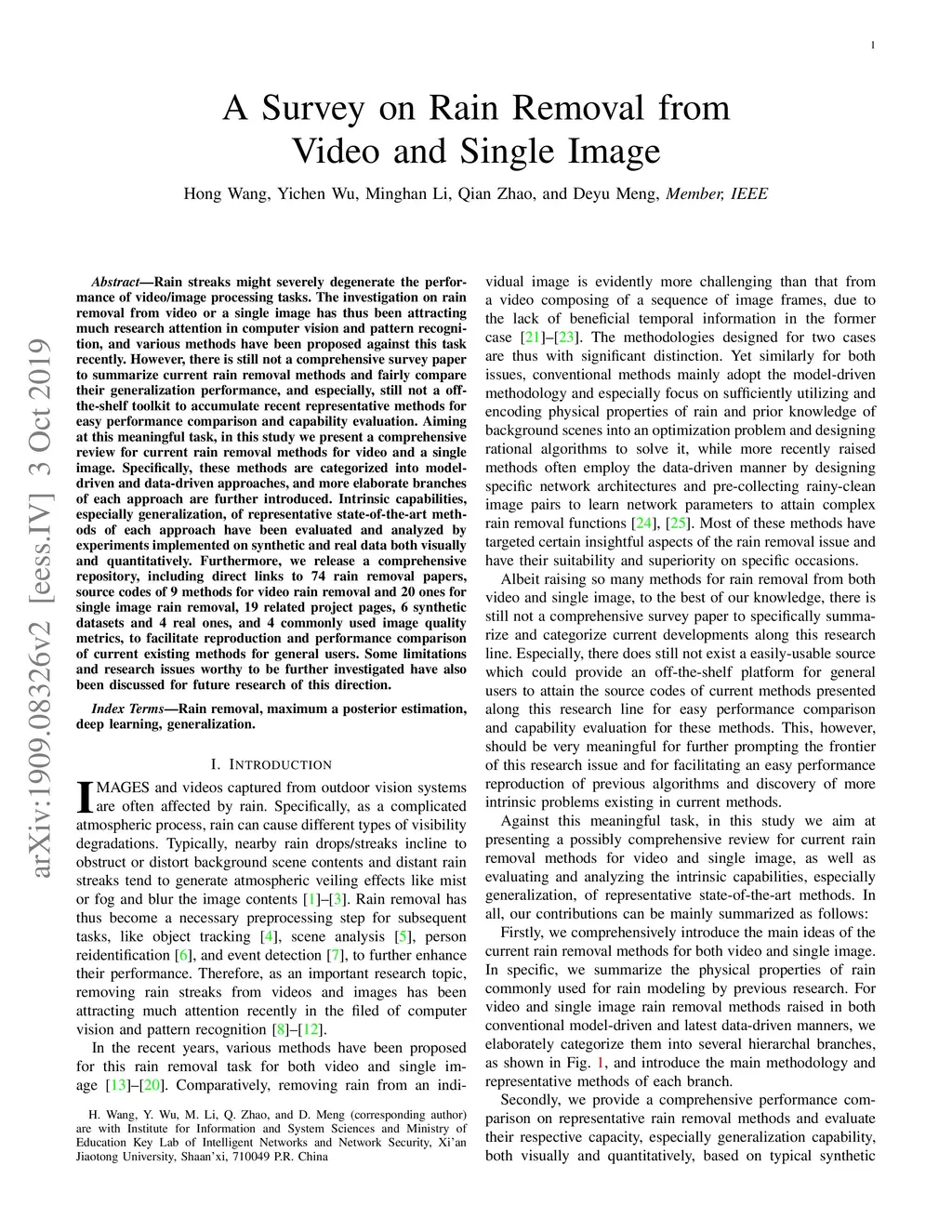 Rain streaks might severely degenerate the performance of video/image processing tasks. The investigations on rain removal from video or a single image has thus been attracting much research attention in the field of computer vision and pattern recognition, and various methods have been proposed against this task in the recent years. However, there is still not a comprehensive survey paper to summarize current rain removal methods and fairly compare their generalization performance, and especially, still not a off-the-shelf toolkit to accumulate recent representative methods for easy performance comparison and capability evaluation. Aiming at this meaningful task, in this study we present a comprehensive review for current rain removal methods for video and a single image. Specifically, these methods are categorized into model-driven and data-driven approaches, and more elaborate branches of each approach are further introduced. Intrinsic capabilities, especially generalization, of representative state-of-the-art methods of each approach have been evaluated and analyzed by experiments implemented on synthetic and real data both visually and quantitatively. Furthermore, we release a comprehensive repository, including direct links to 74 rain removal papers, source codes of 9 methods for video rain removal and 20 ones for single image rain removal, 19 related project pages, 6 synthetic datasets and 4 real ones, and 4 commonly used image quality metrics, to facilitate reproduction and performance comparison of current existing methods for general users. Some limitations and research issues worthy to be further investigated have also been discussed for future research of this direction.